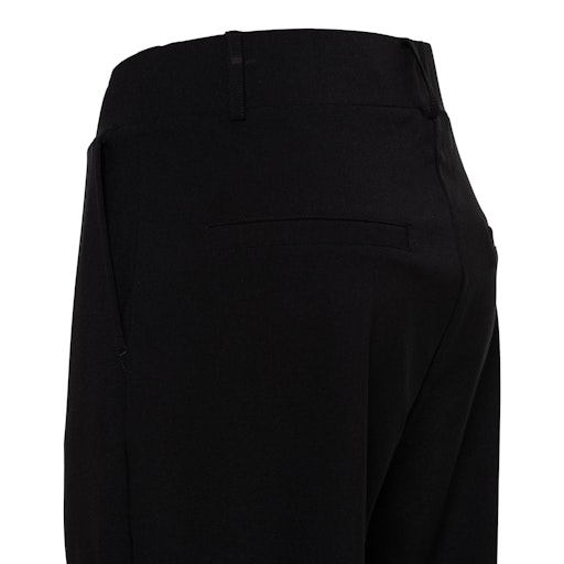 De gladde tailleband met elastiek zorgt voor een soepele fit die moeiteloos meebeweegt, terwijl de rechte broekspijpen een tijdloos silhouet creëren dat zowel casual als chic te stylen is. Praktische steekzakken aan de voorkant en strookzakken aan de achterkant maken het ontwerp compleet en zorgen voor een nette, verzorgde look.